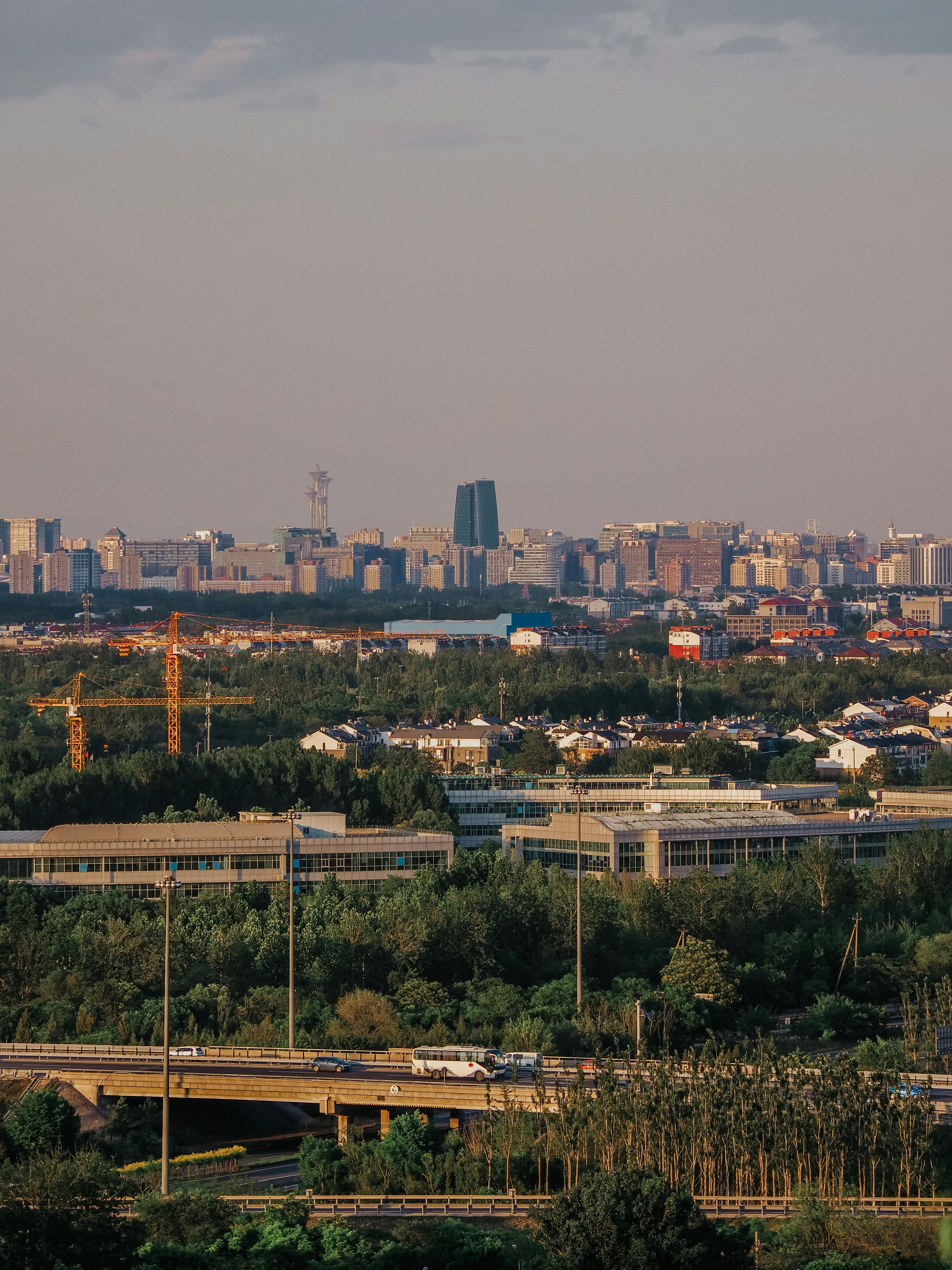 Landscape Graphy Of Two Gray High Rise Buildings Across Greenfield