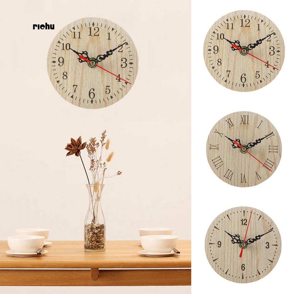 Richu Retro Numbers Round Wooden Desktop Wall Clock Living Room