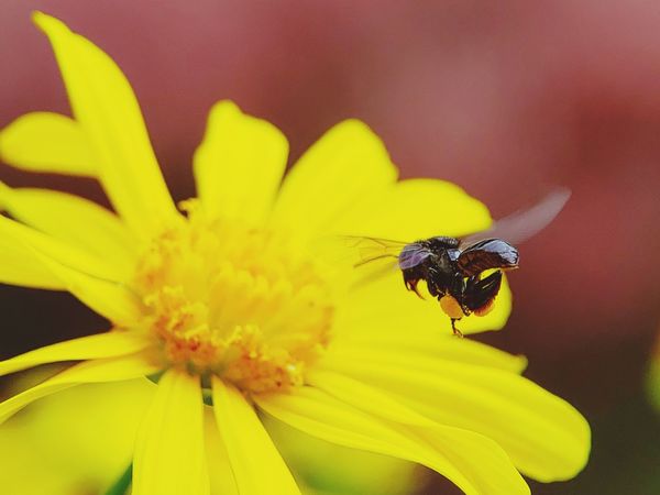 Image Of Honey Bee On Yellow Mari Gold Flower Closeup Vg122487 Picxy