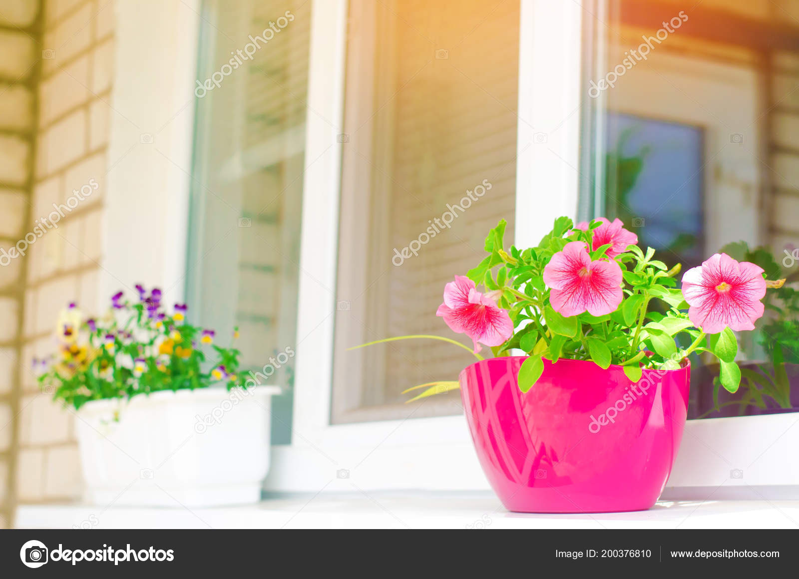 Pot Pink Petunias Stands Window Beautiful Spring Summer Flowers