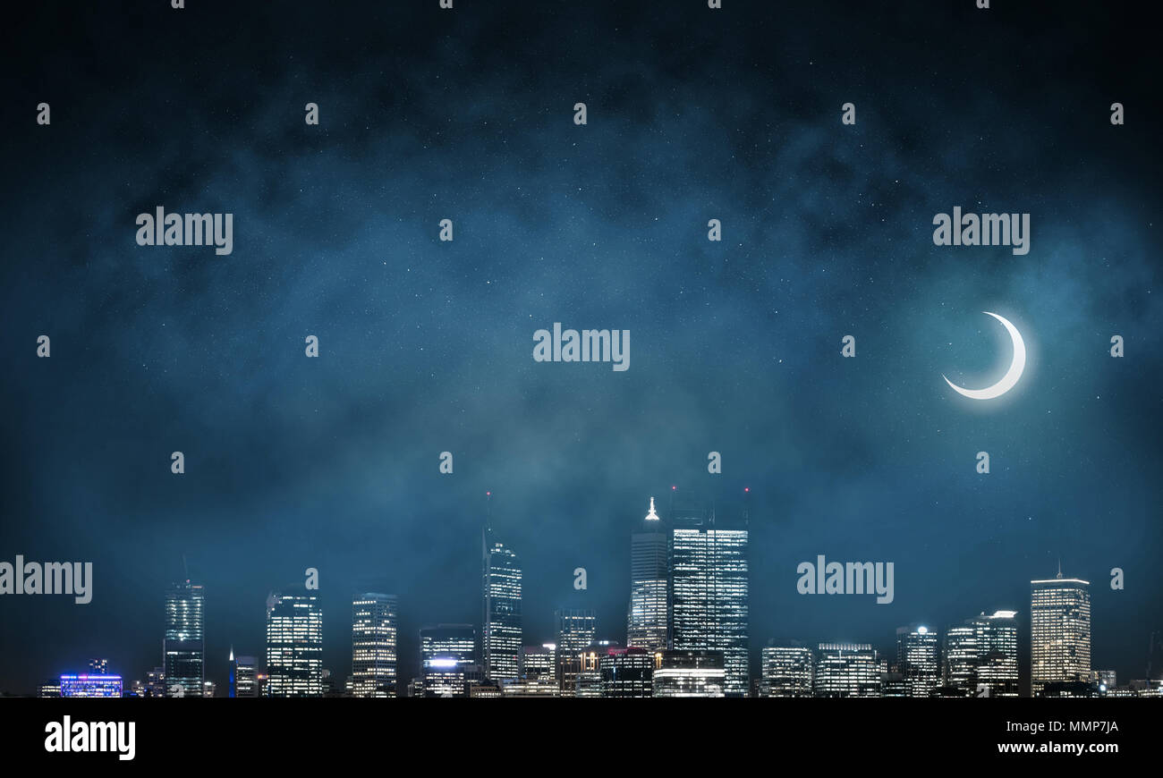 Abstract Image Of Cityscape View At Night With Dark Blue Skyscape