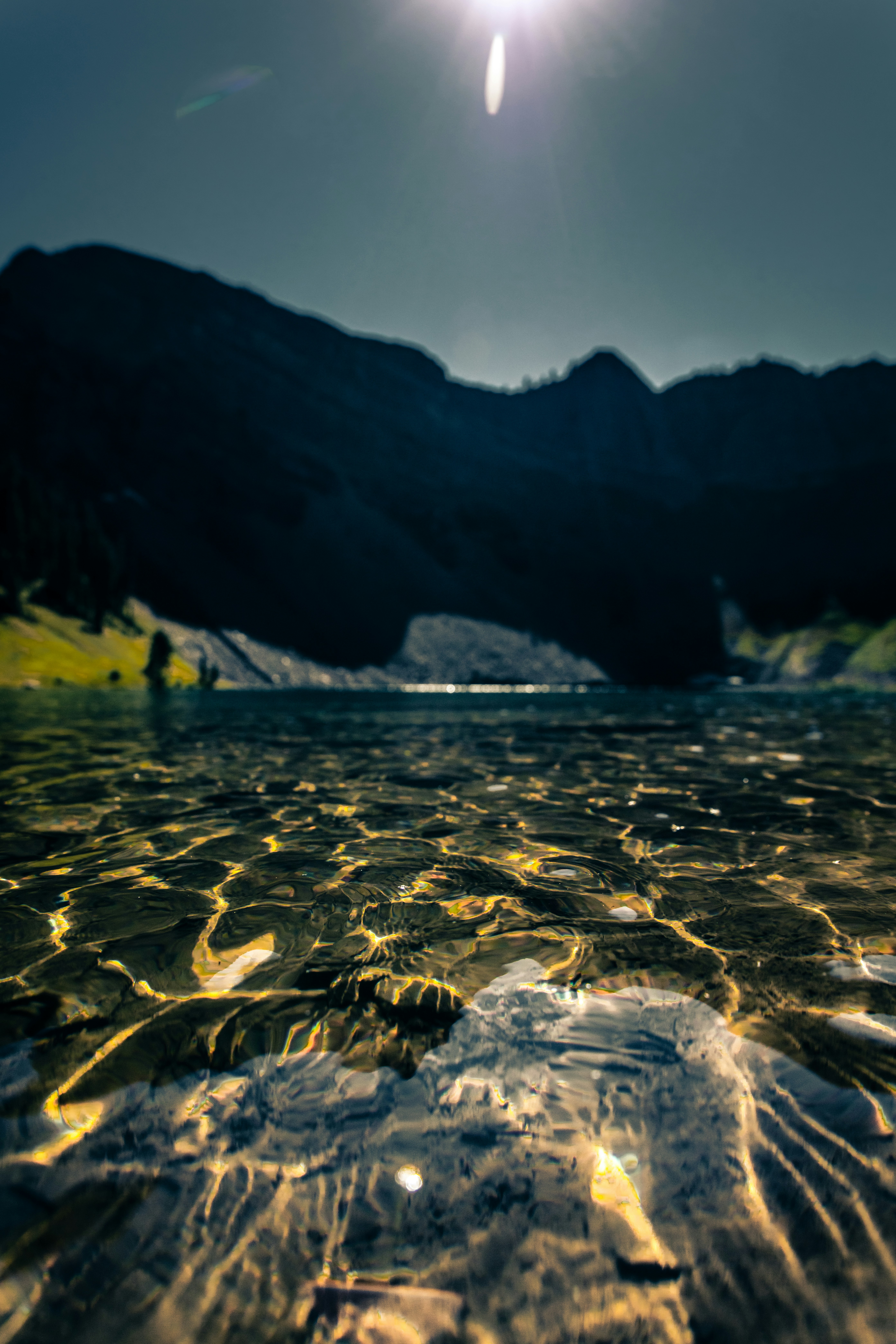 Tags of this image. Silhouette of mountain surrounded with body of water with the shaft of sunset behind it under blue skies and white clouds public domain. Young woman woman sea. Download this photo by simon mercier on unsplash lake viewing mountain under blue and white skies during daytime photo free nature image on unsplash unsplash home.