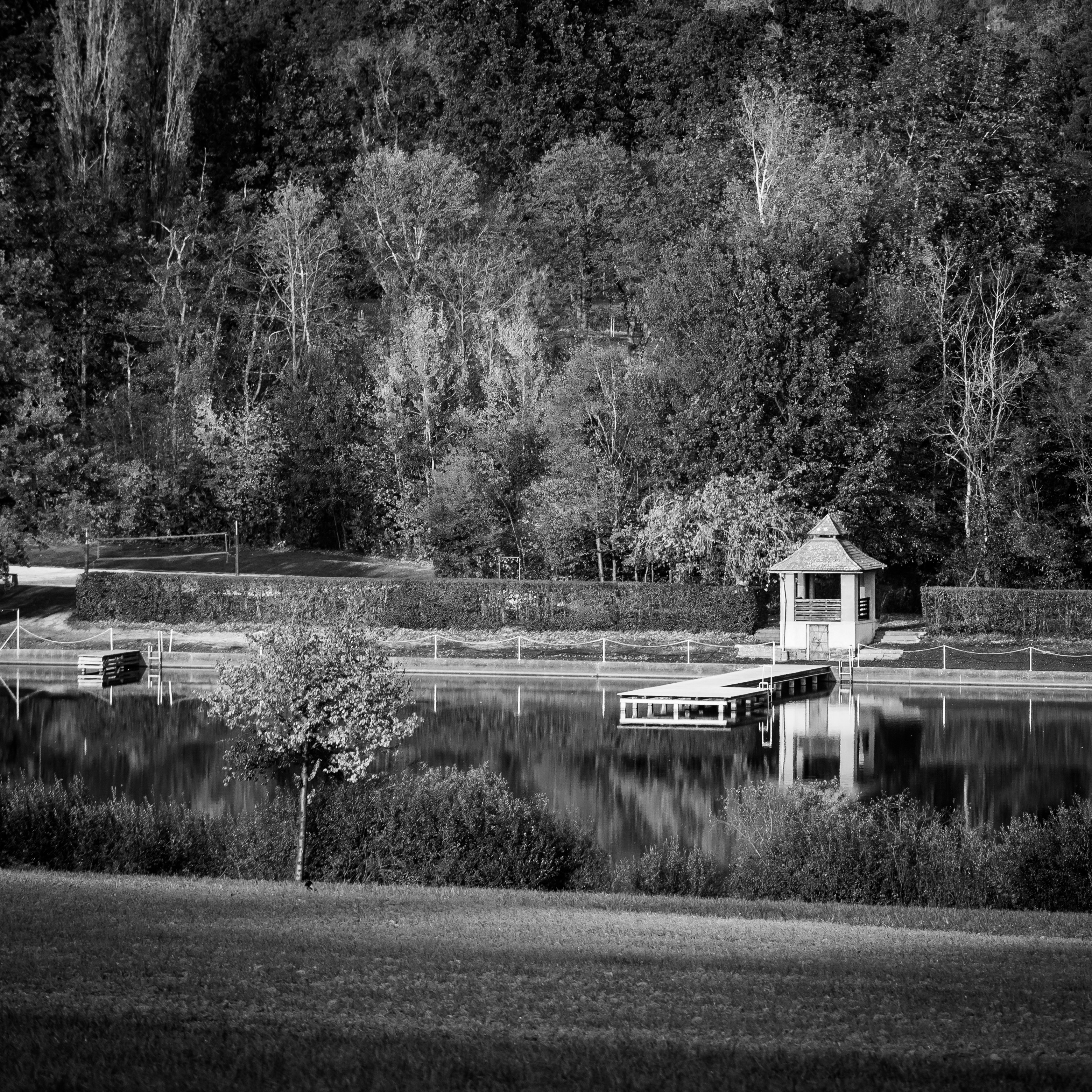 Greyscale Photo Of Concrete House Surrounded With Trees Photo