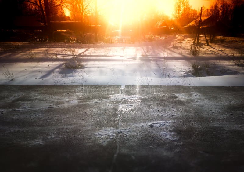 Sun Glow Over Empty Winter Railway Station Background Stock Image