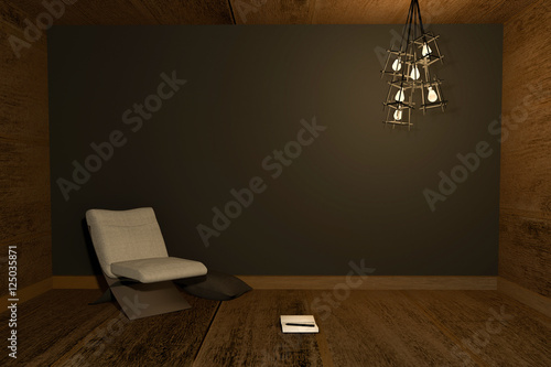 3d Rendering Illustration Of Night Scene Modern Interior With