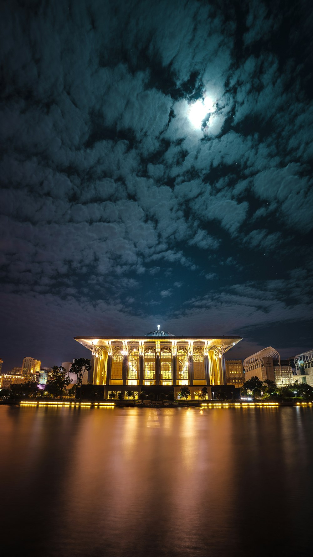 Cityscale Placed Body Water City Building Light Nighttime
