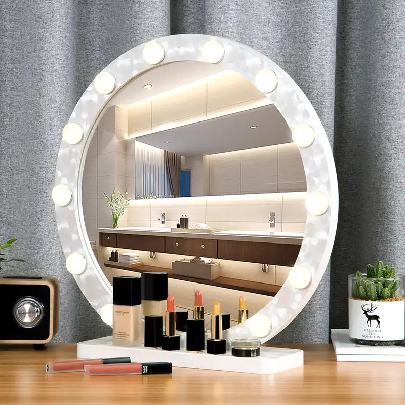 Round Large Makeup Mirror With Light Led Professional Desktop
