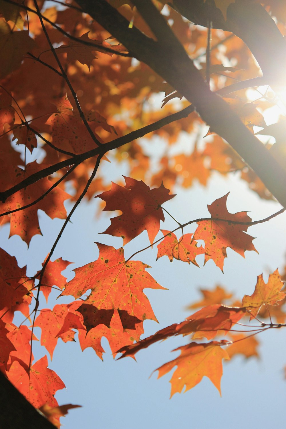 Brown Maple Leaves On Low Angle Photography Photo Free Sunlight
