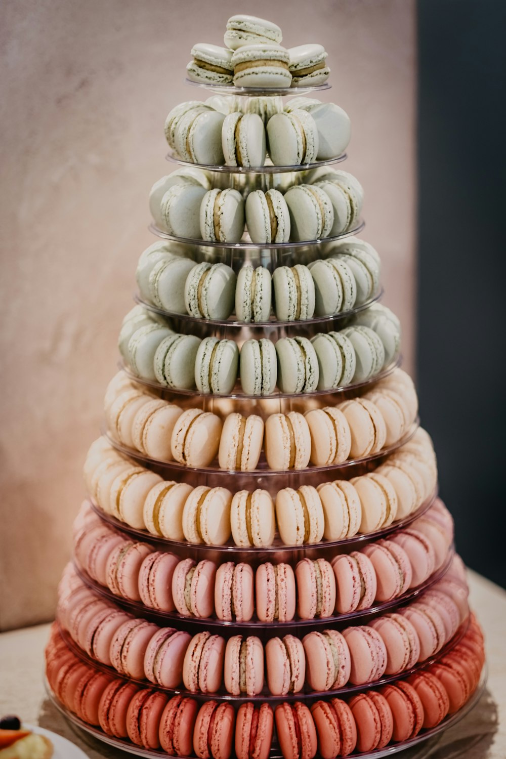 Pink Blue And Green Macaroons On White Ceramic Plate Photo Free