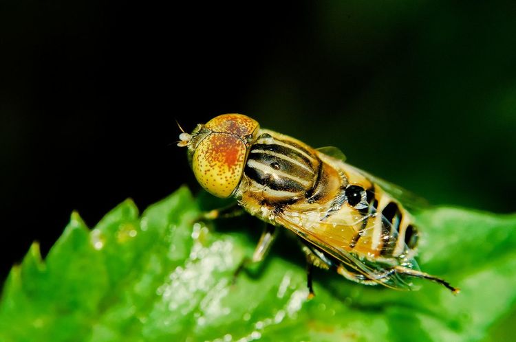 Macro Photography Of Black Fly On Green Leaf With Dews Rain Dance