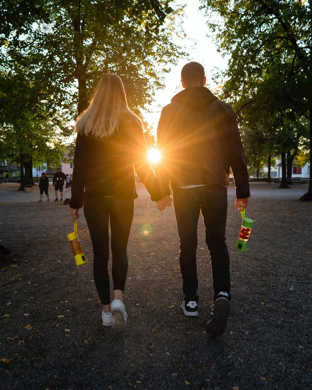 Man Holding Hands With Baby While Walking Through Pathway Facing Sunlight Hd Image Wallpapers