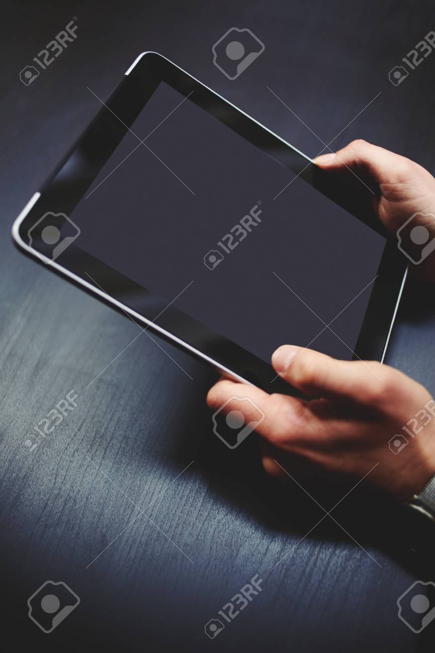 Closeup Image Of Male S Hands Holding Digital Tablet With Blank