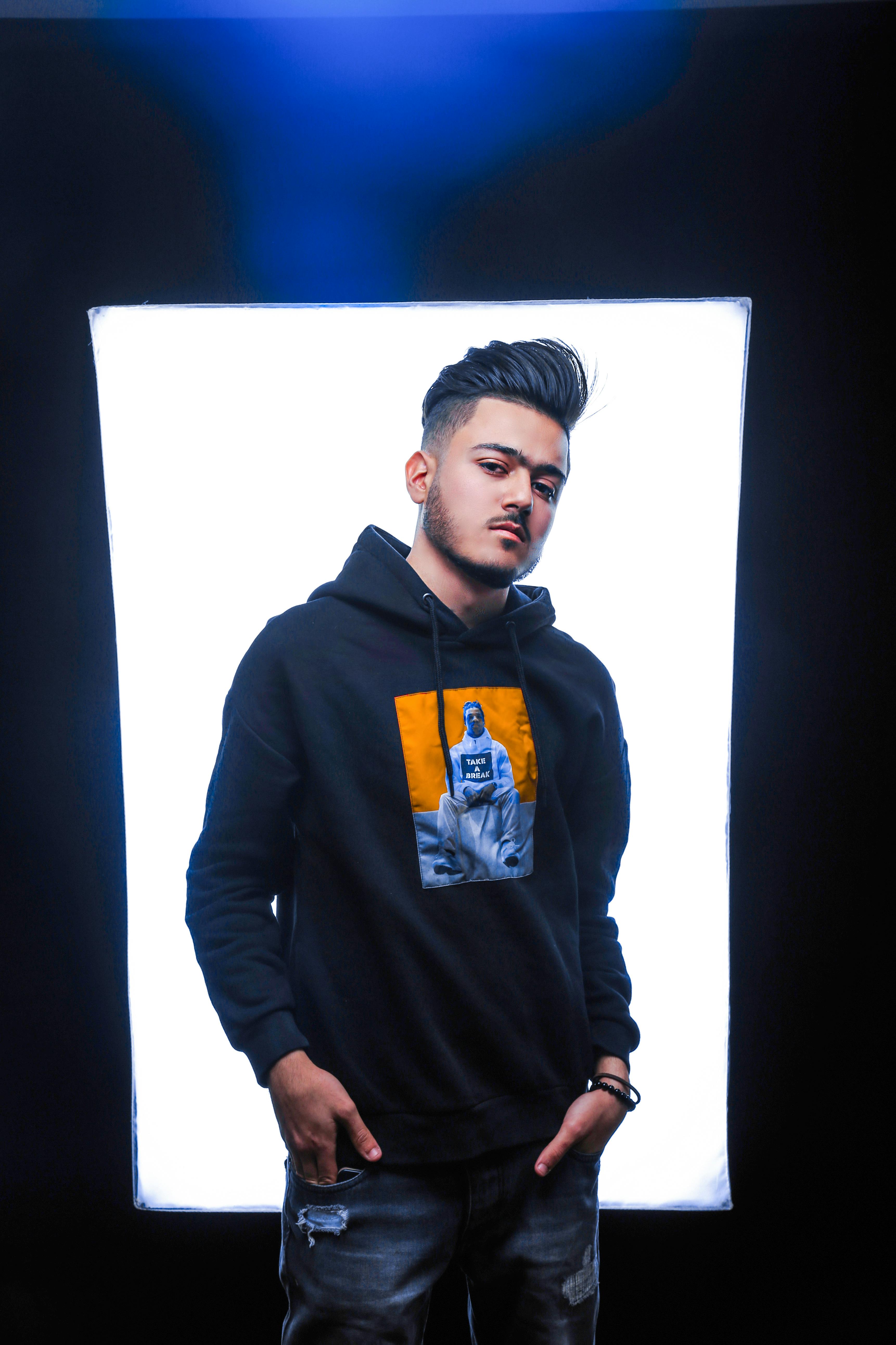 Man In Black Long Sleeve Shirt And Blue Denim Jeans Standing On
