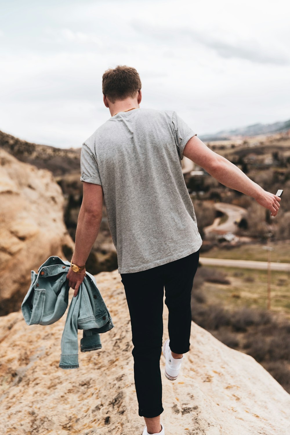 Man Spreading His Arm Wide While Standing On Top Of Hill Photo