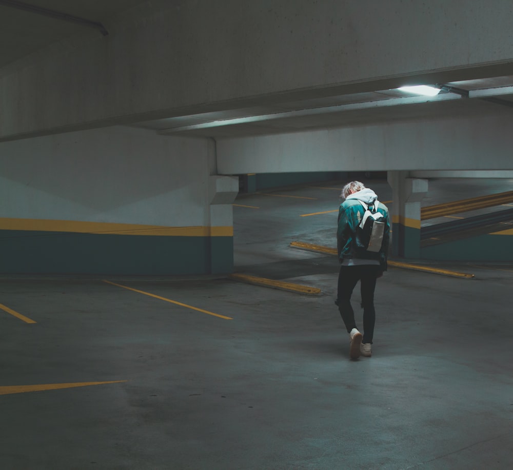 Man Walking On Slope Parking Lot Photo Free Car Park Image On