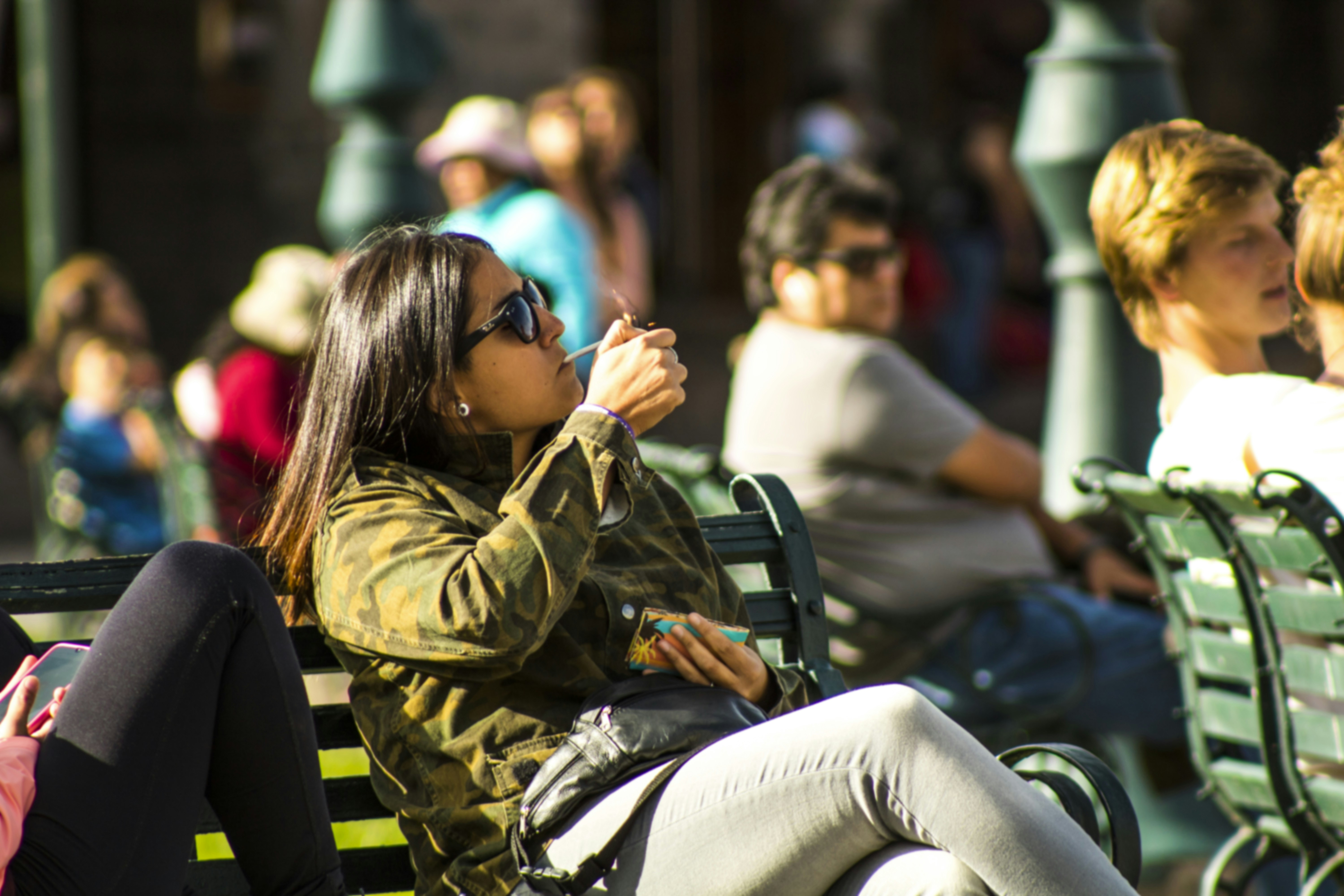 Woman In Green And Brown Camouflage Jacket And Gray Pants Sitting