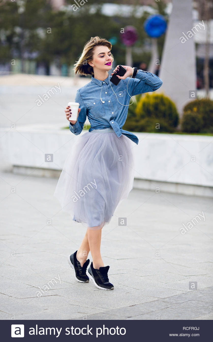 Beautiful Girl Wearing Jeans Shirt High Resolution Stock