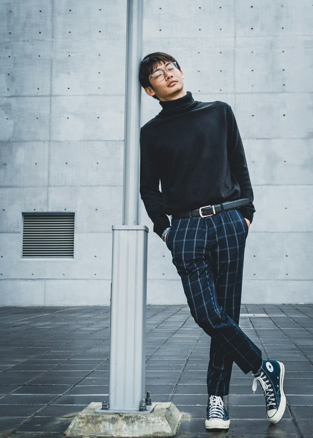 Man In Black Crew Neck T Shirt And Blue Denim Jeans Leaning On