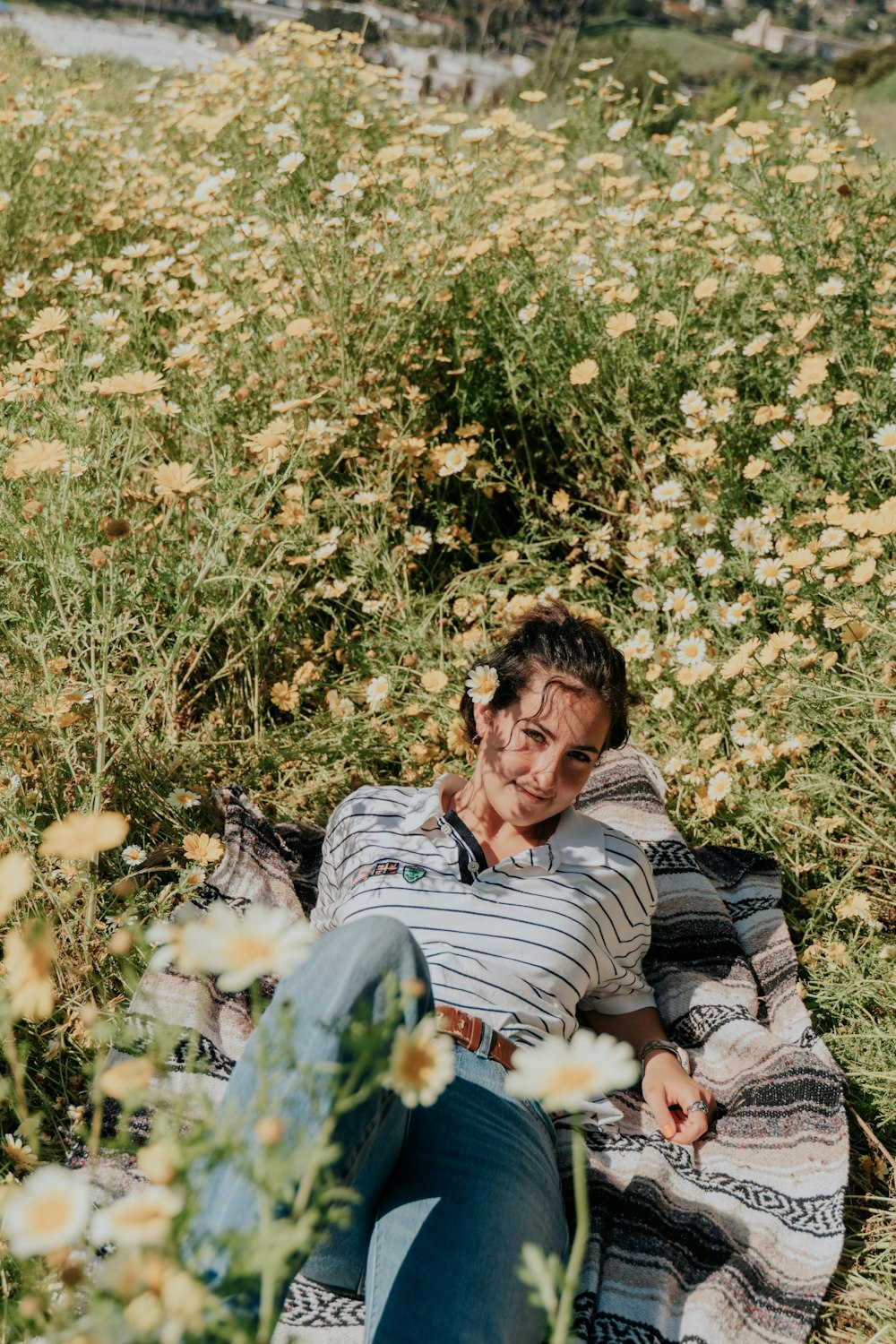 Woman In White And Blue Striped Off Shoulder Shirt Holding Yellow