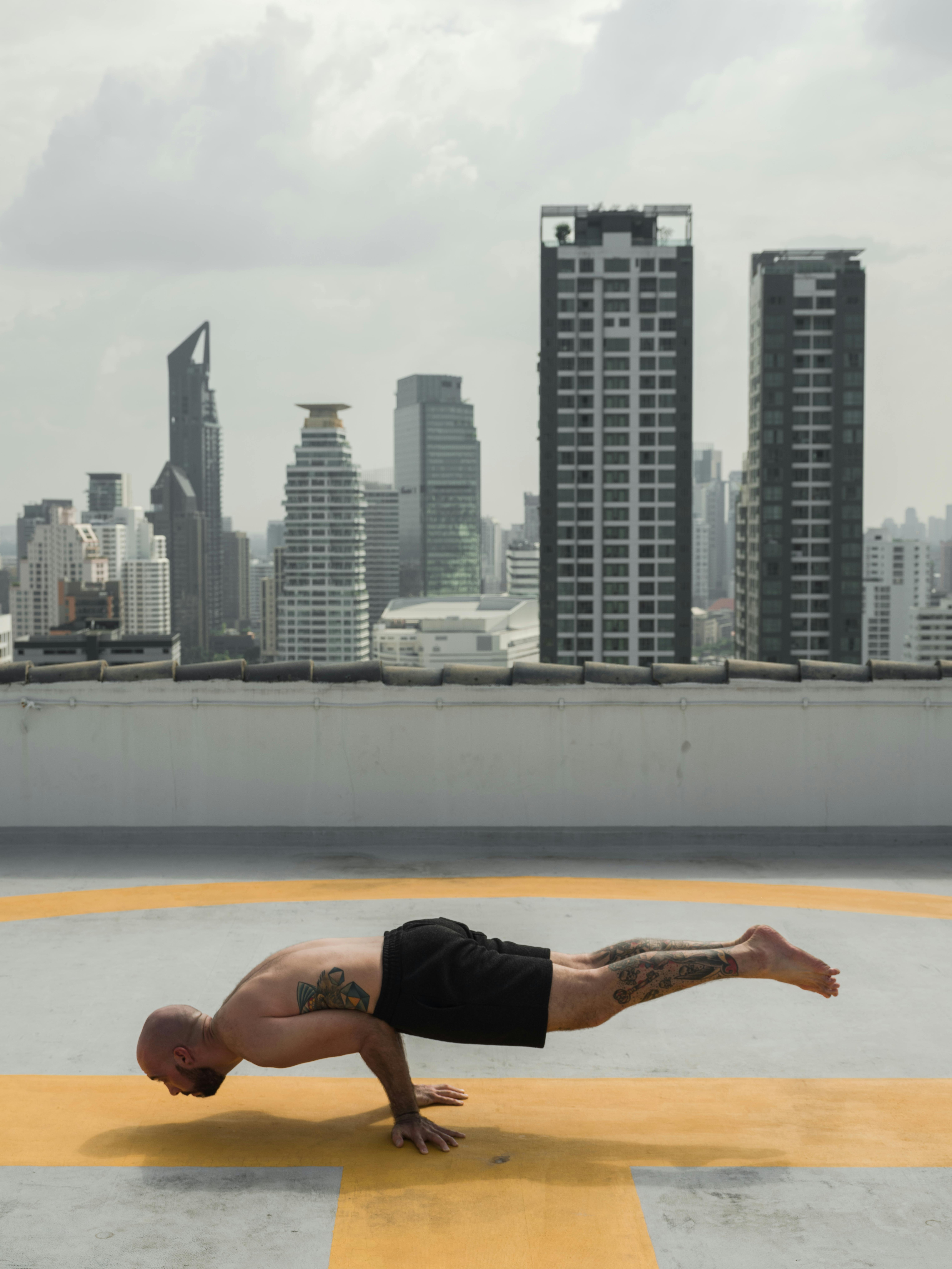 Free Photo Man In Sleeveless Wet Suit Doing Some Aerobics At The