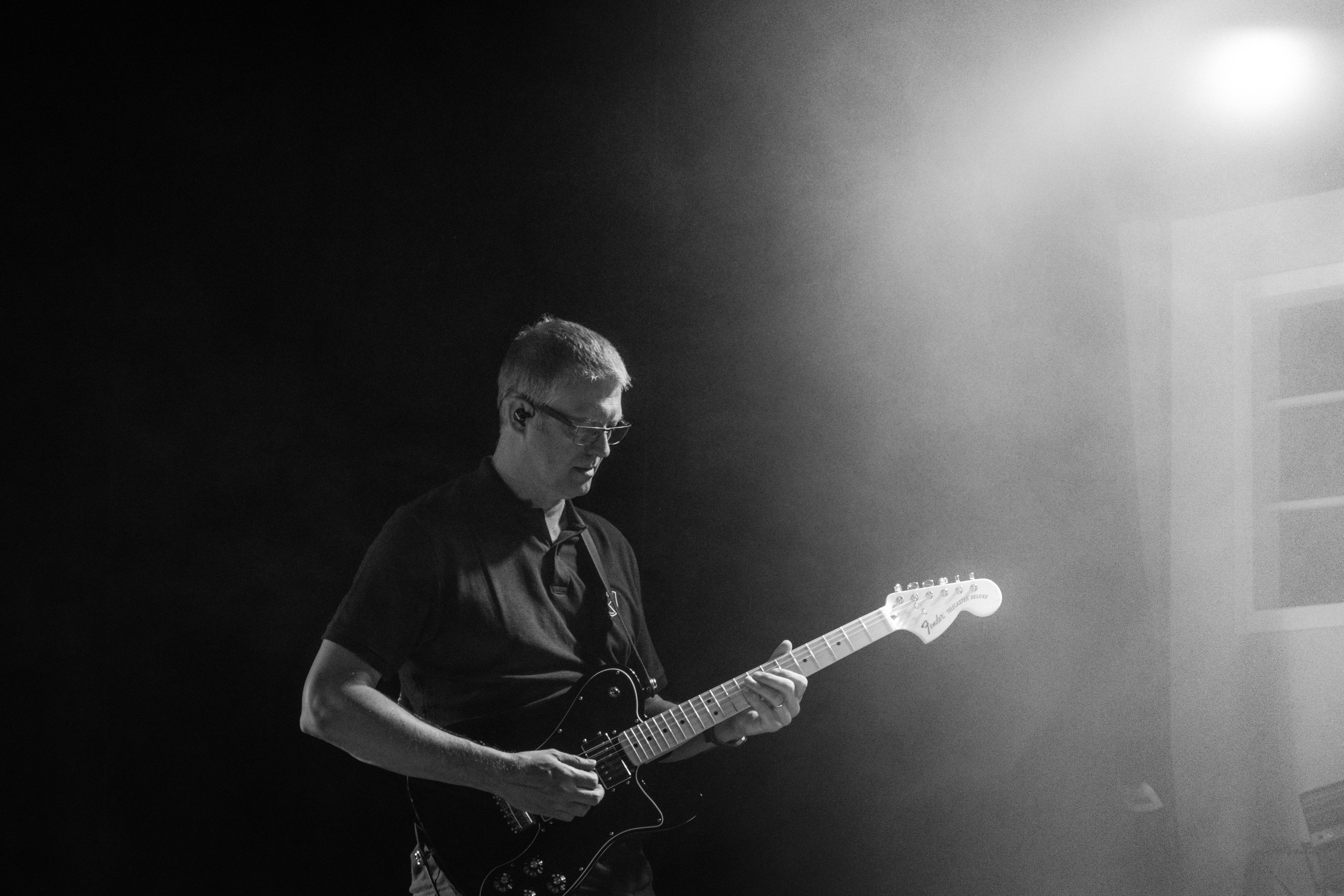 Grayscale Photo Of Man Playing Electric Guitar Free Stock Photo