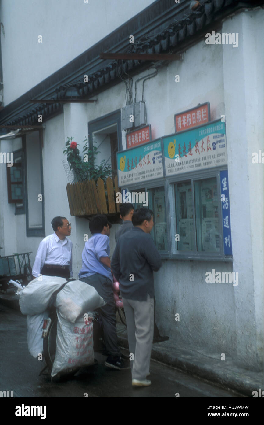 Men Reading The News From The Wallpapers Shanghai China Stock
