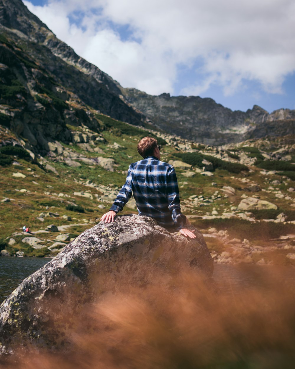 Selective Focus Photography Of Man Sitting On Rock While Looking