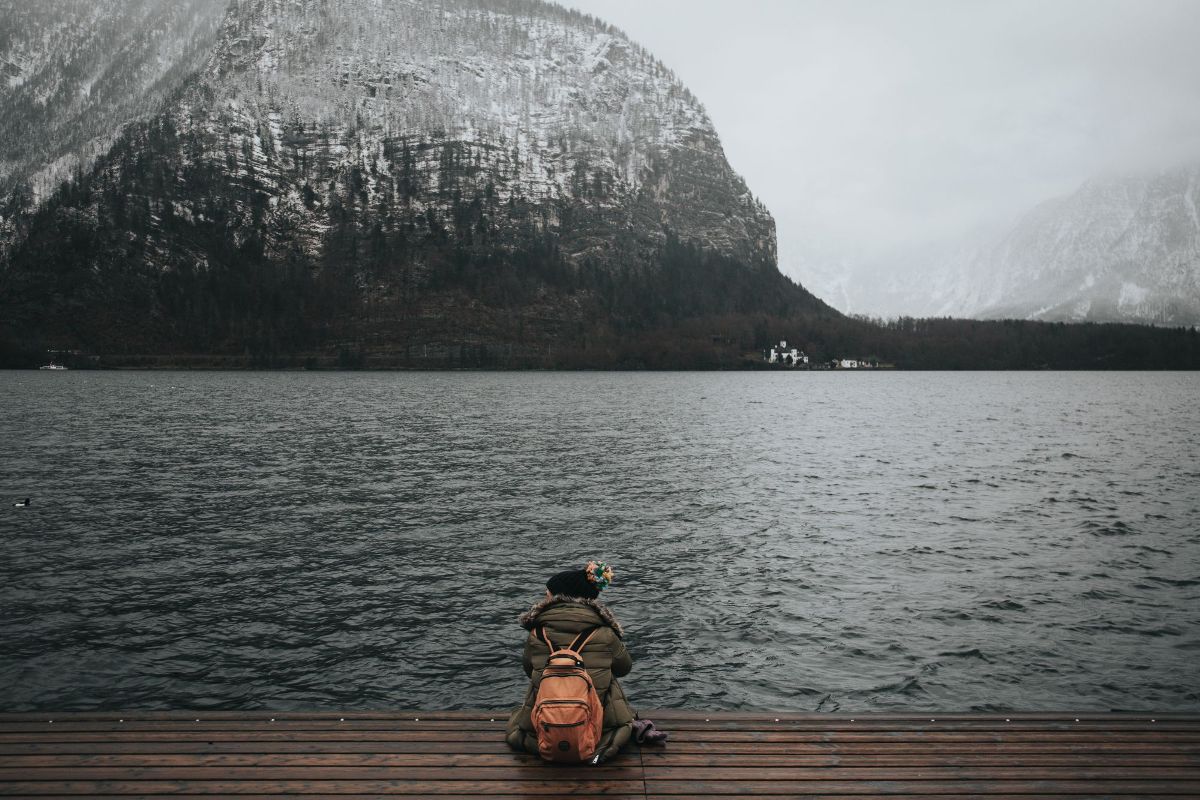 Photo Of Man Sitting On Top Of The Mountain Hd Wallpaper
