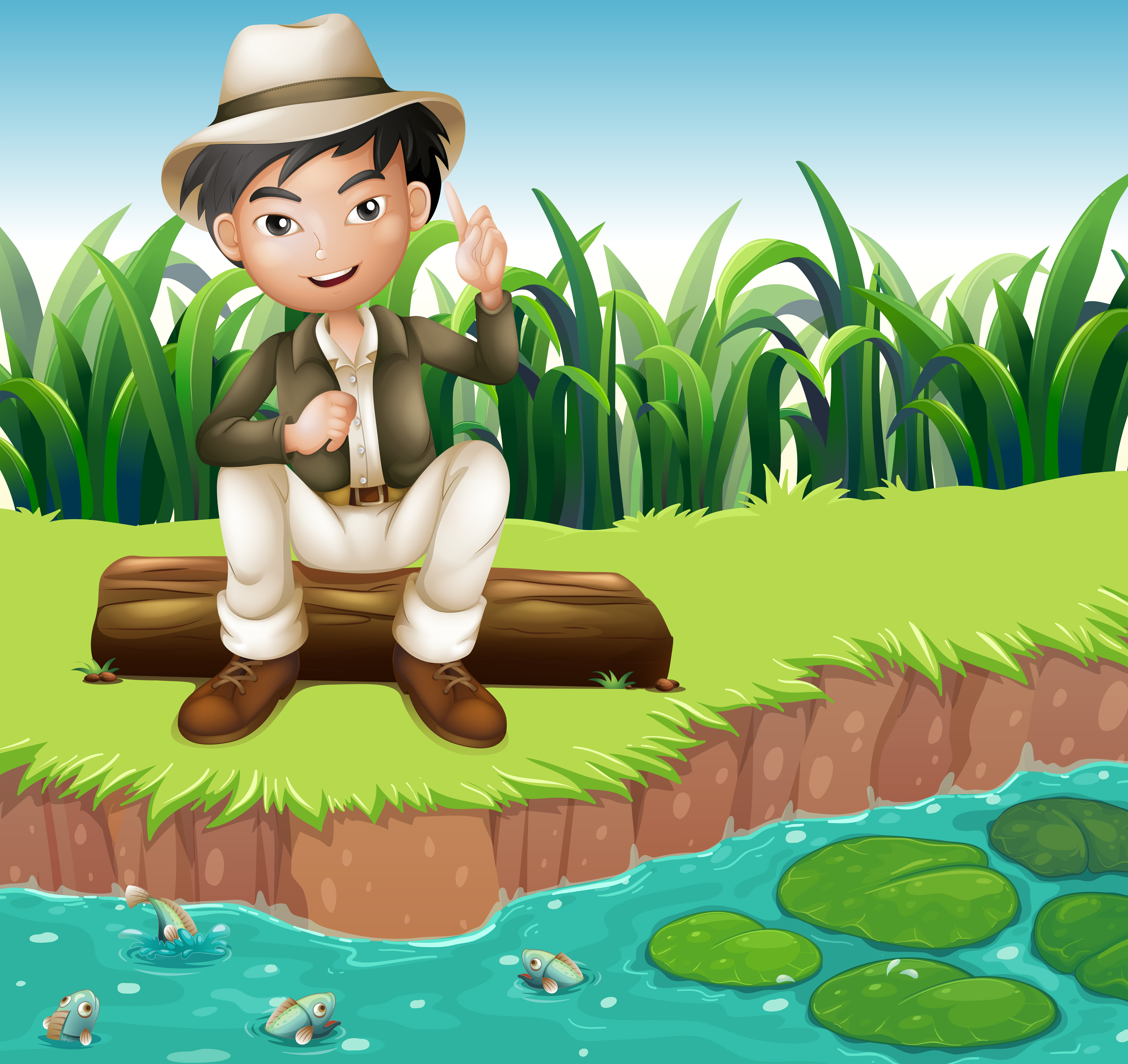 A Boy Sitting On A Wood At The Riverbank Download Free Vectors