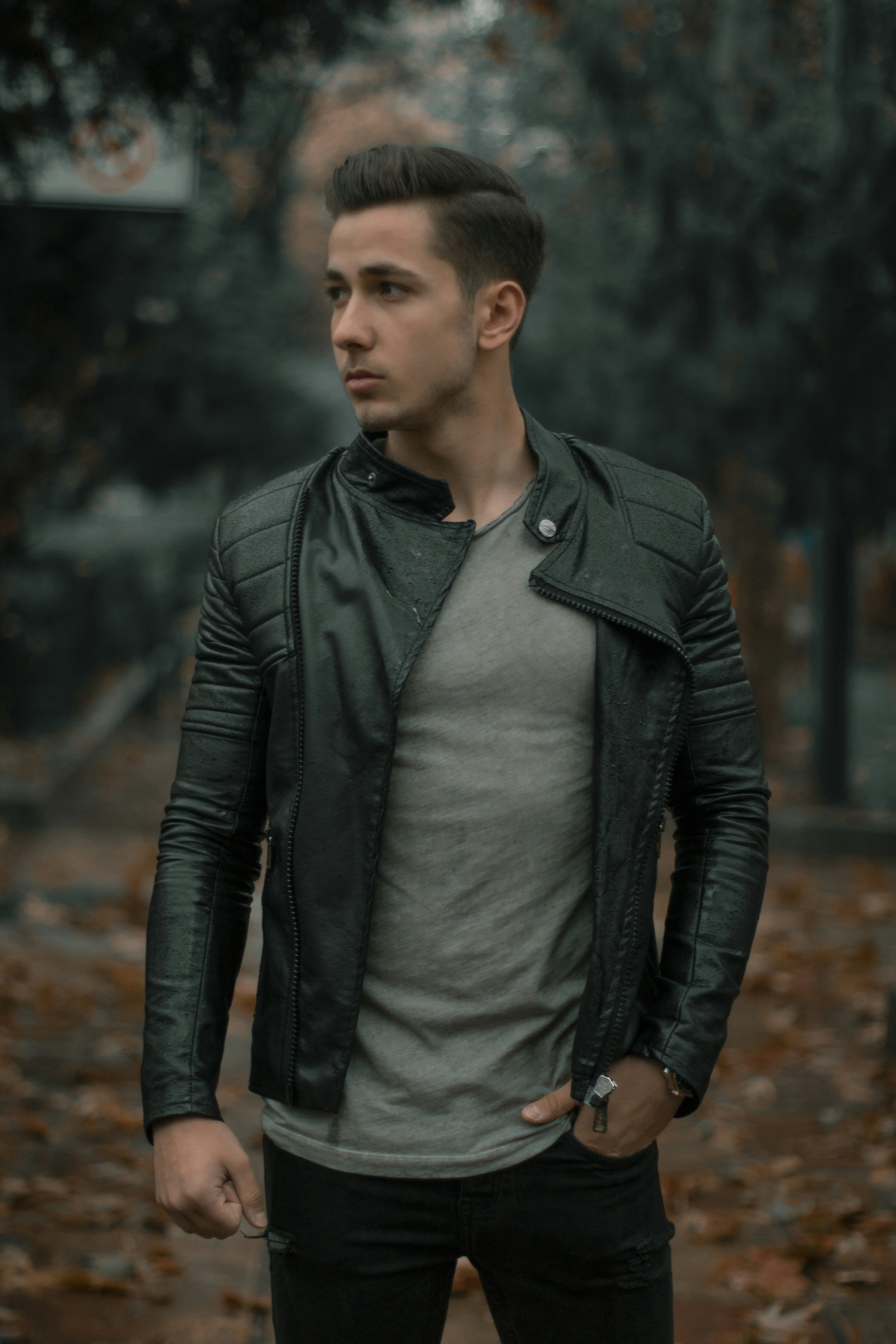 Man Wearing Black Full Zip Leather Jacket Photo Photo Free