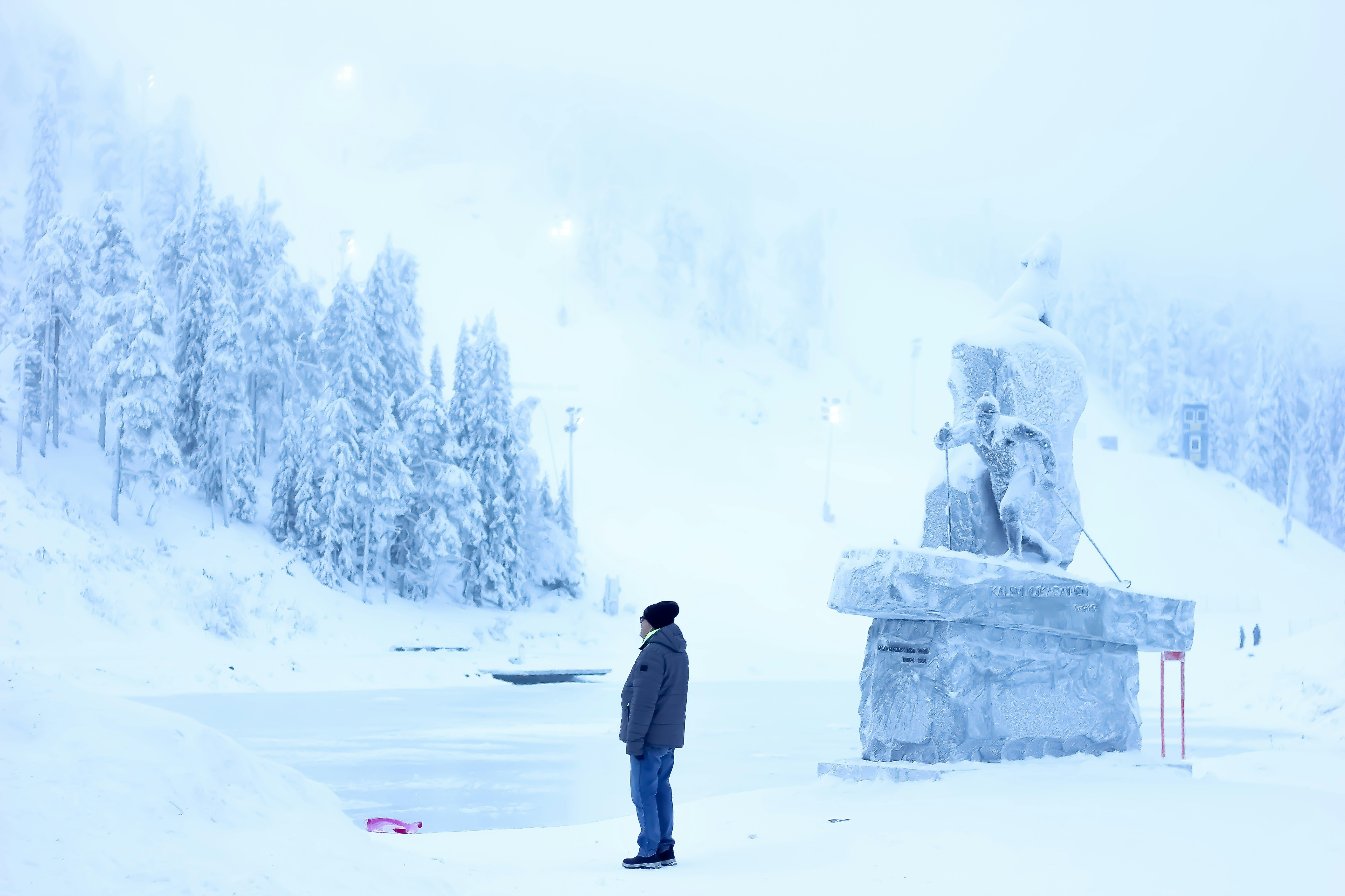 Man Walking In Snow In The Middle Of The Forest Free Image Peakpx