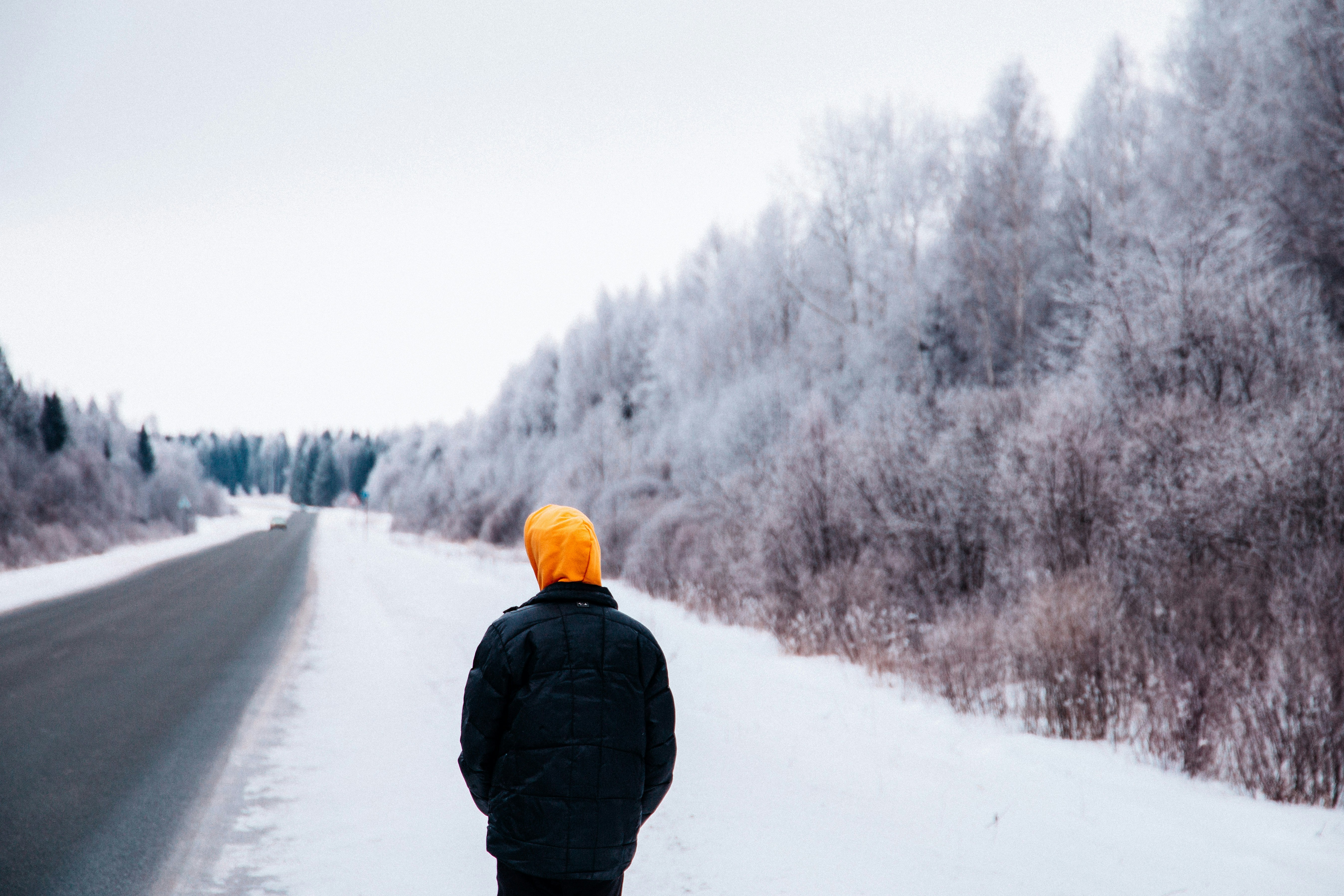 Person Wearing Black And Orange Hooded Jacket Standing On Snowy
