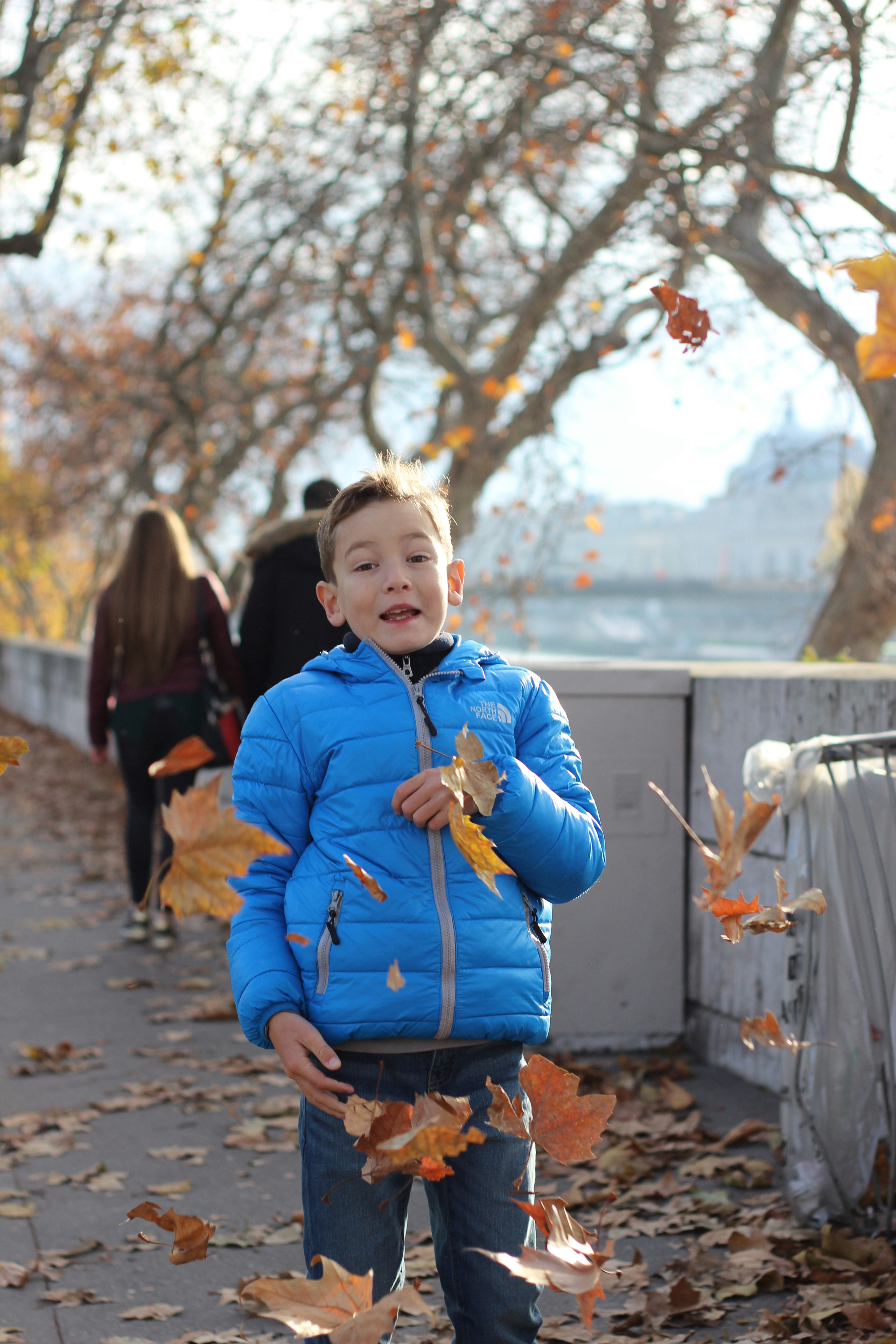 Man Wearing Red Zip Up Bubble Jacket Under Brown Leaf Tree Photo