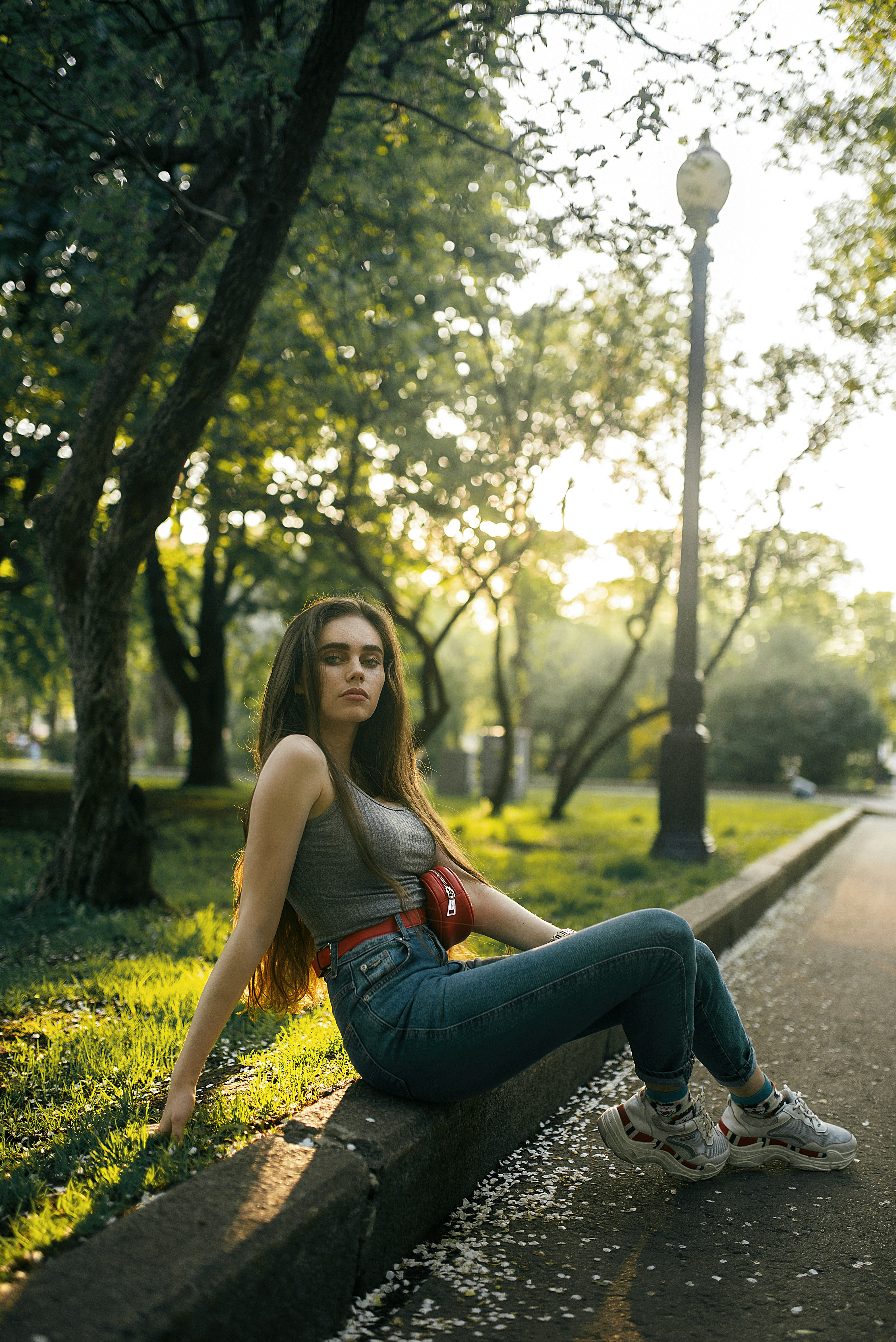 Hd Wallpaper Man Wearing Brown Fitted Jeans And Sneakers Standing