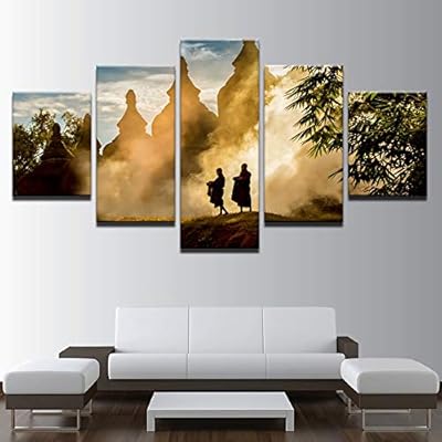 Gudojk Canvas Hd Prints Poster Wall Art 5 Pieces Monks Mountain