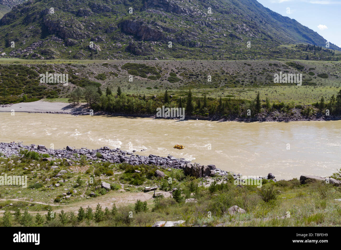 Chuya River Rafting In Altai Mointain Sunny Summer Day Mountain