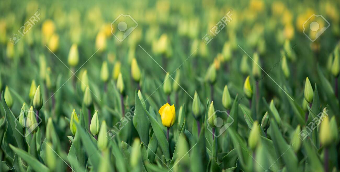 Yellow Tulip Meadow Colorful Spring Flowers In Garden Nature