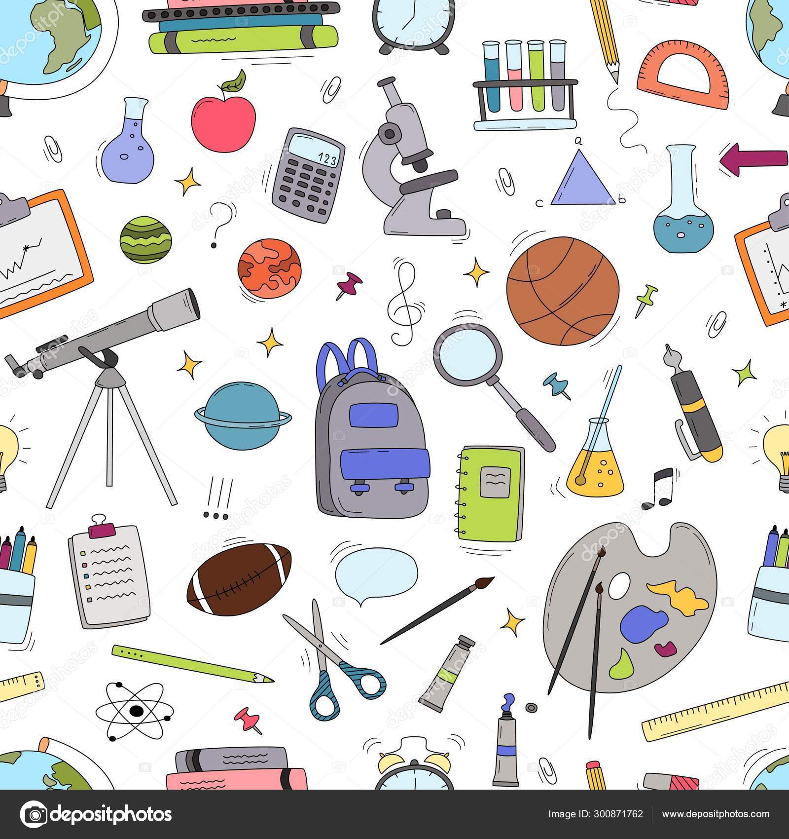 Vector Seamless Pattern School Supplies Notebook Back School