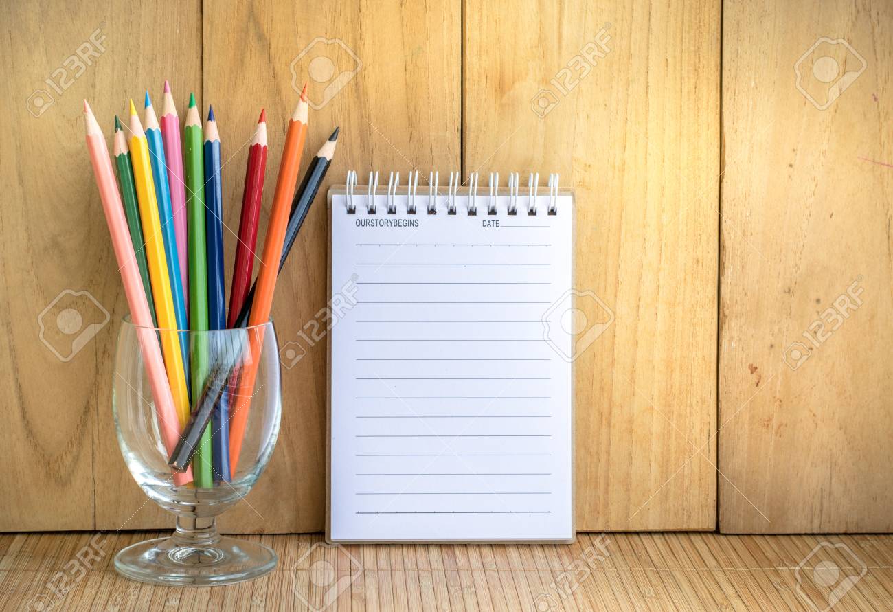 Holding Notepad Pen On Book Wood Stock Photo Edit Now 722855233