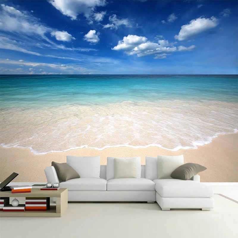 Custom Blue Sky White Clouds Sandy Beach Sea Water 3d Photo