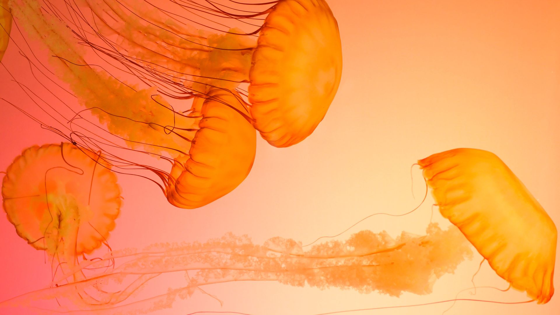 Hd Wallpaper Three Orange Jelly Fish Animal Jellyfish Nature