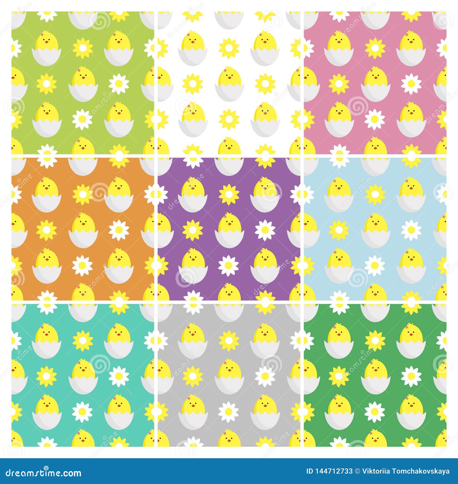 Set Seamless Vector Illustration With Daisies Chamomile And
