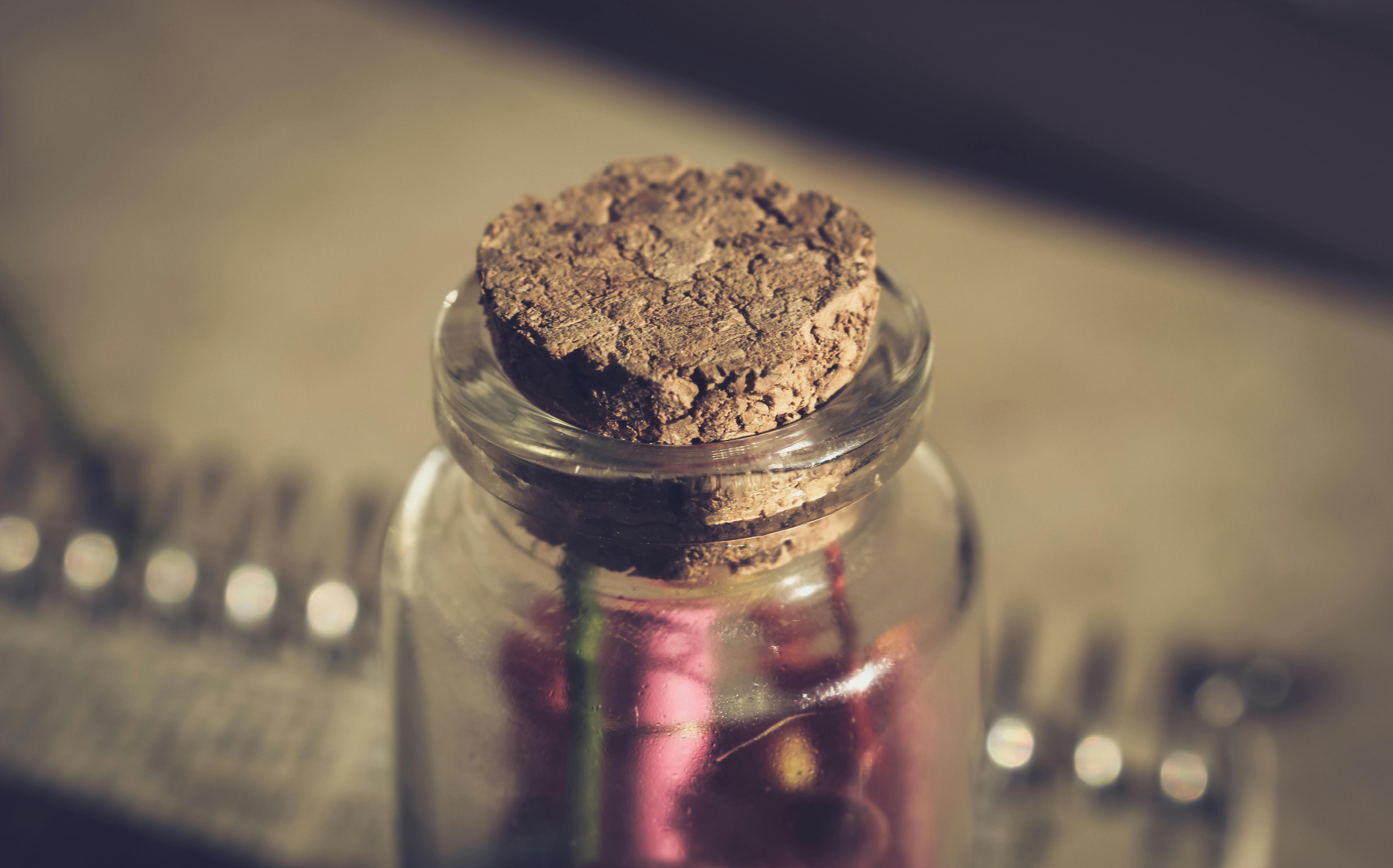 Paper Inside Clear Glass Jar With Brown Cork Free Stock Photo