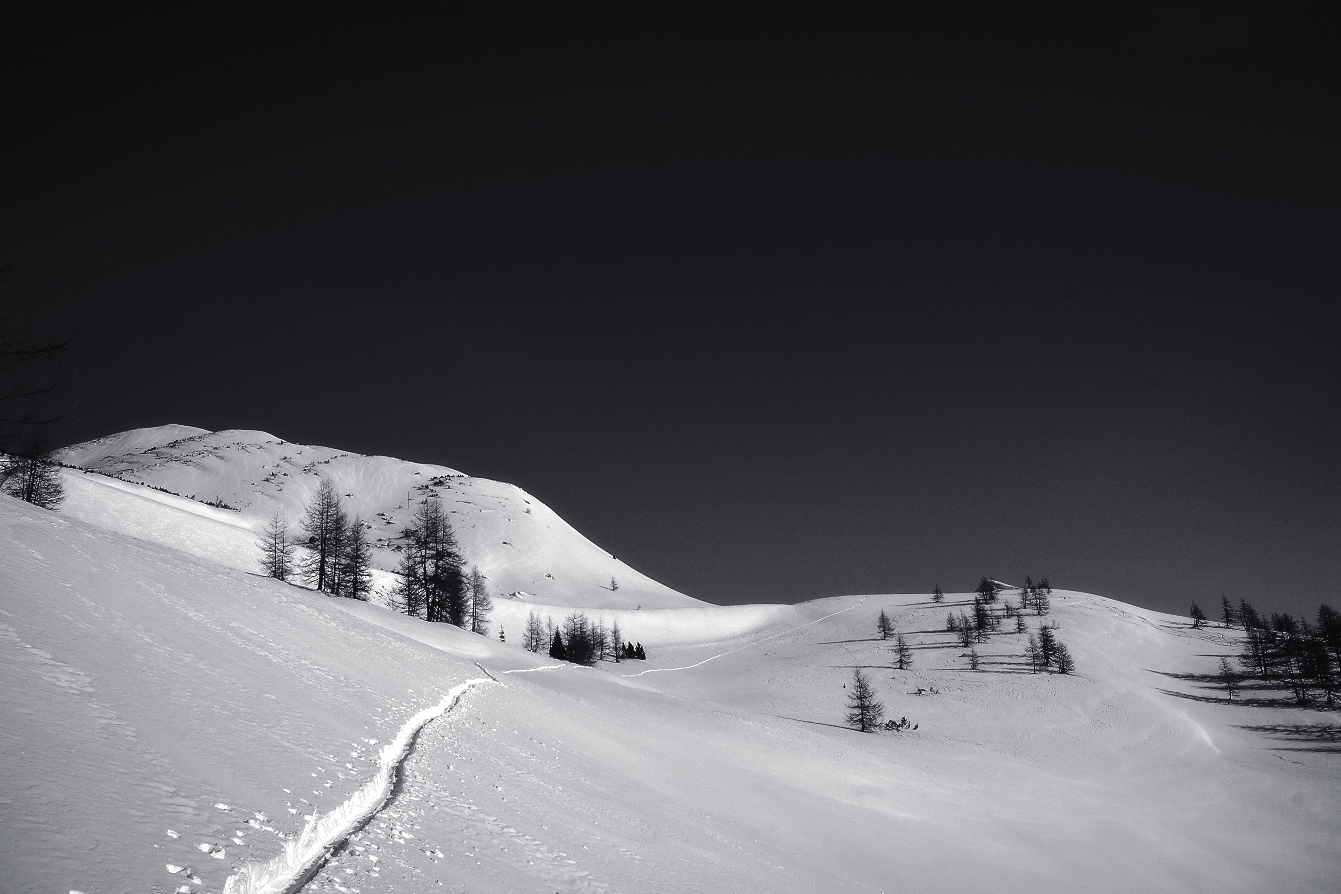 Grayscale Photography Of Snow Field Photo Free Plant Image On