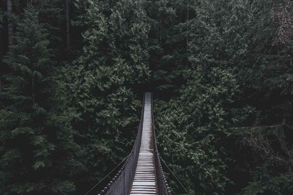 Black Hanging Bridge Surrounded By Green Forest Trees Free Stock