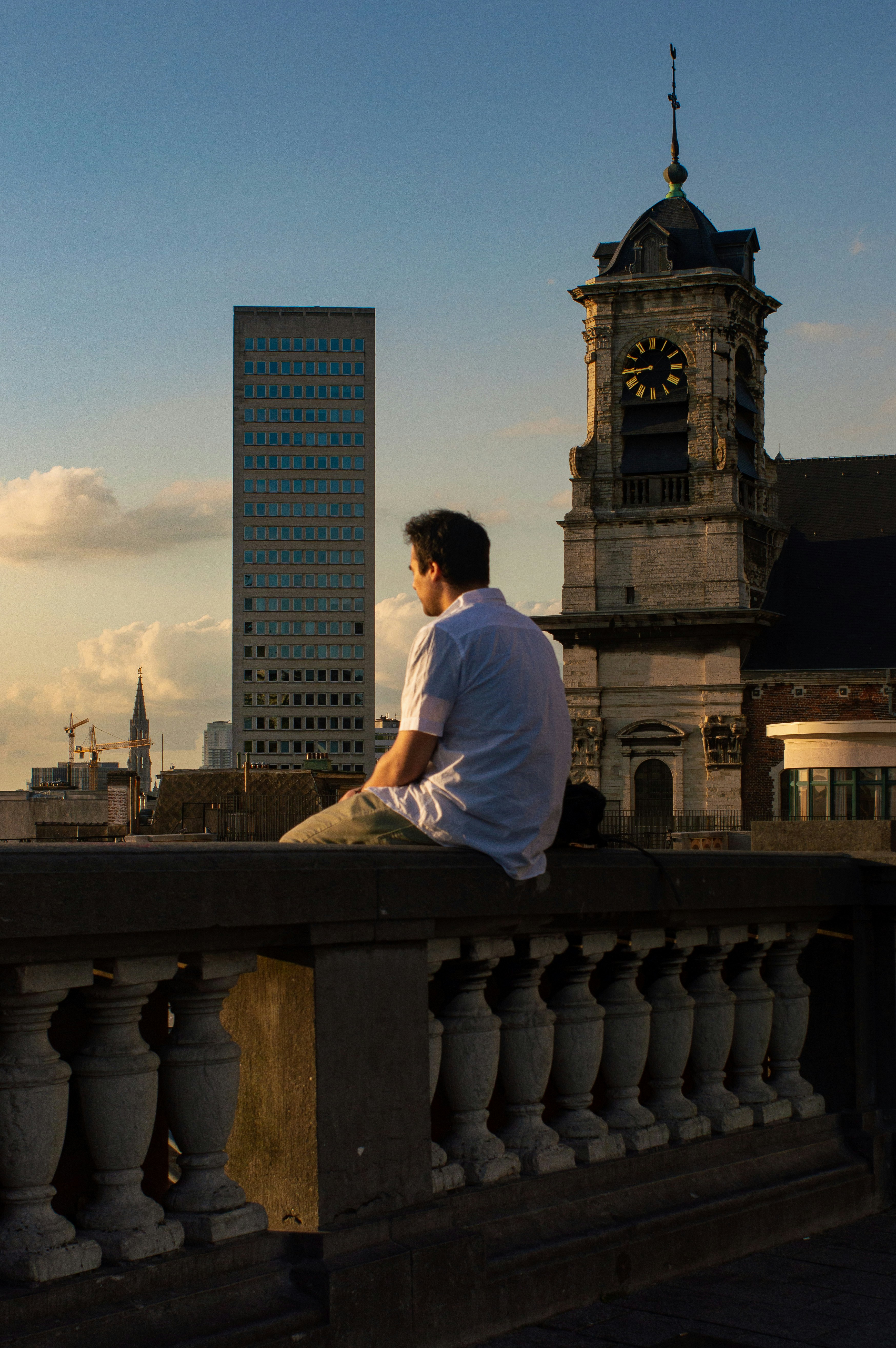 Man Sitting On Top Of Building Photo Free Railing Image On Unsplash