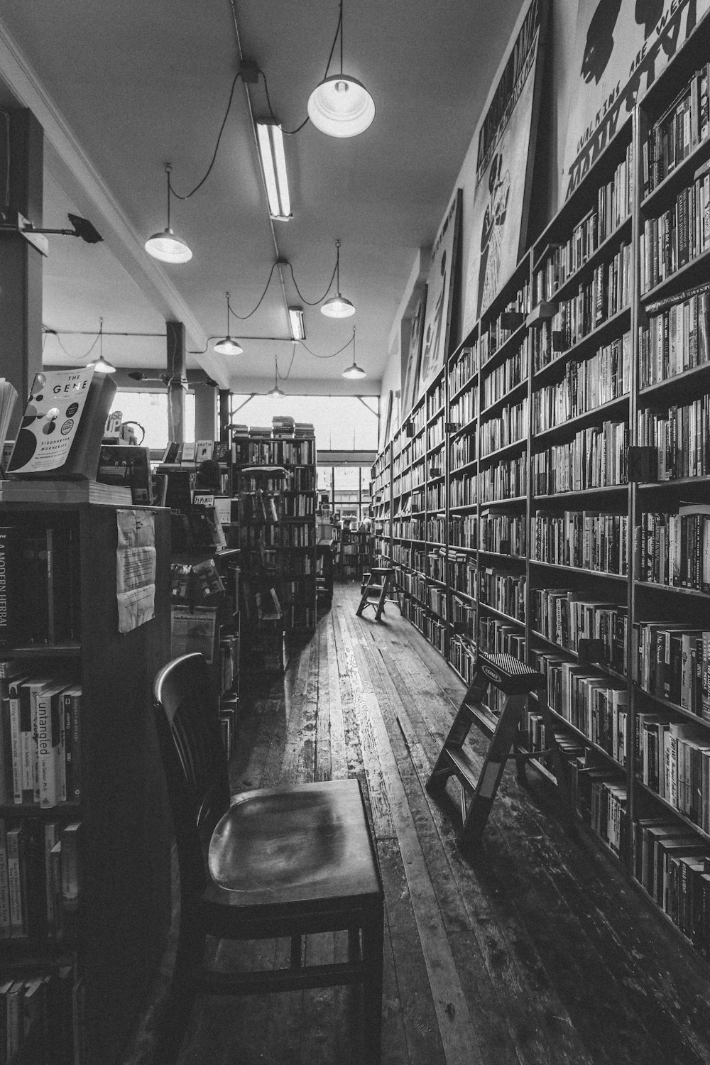 Grayscale Photo Of Man Standing In Front Of Books Photo Free
