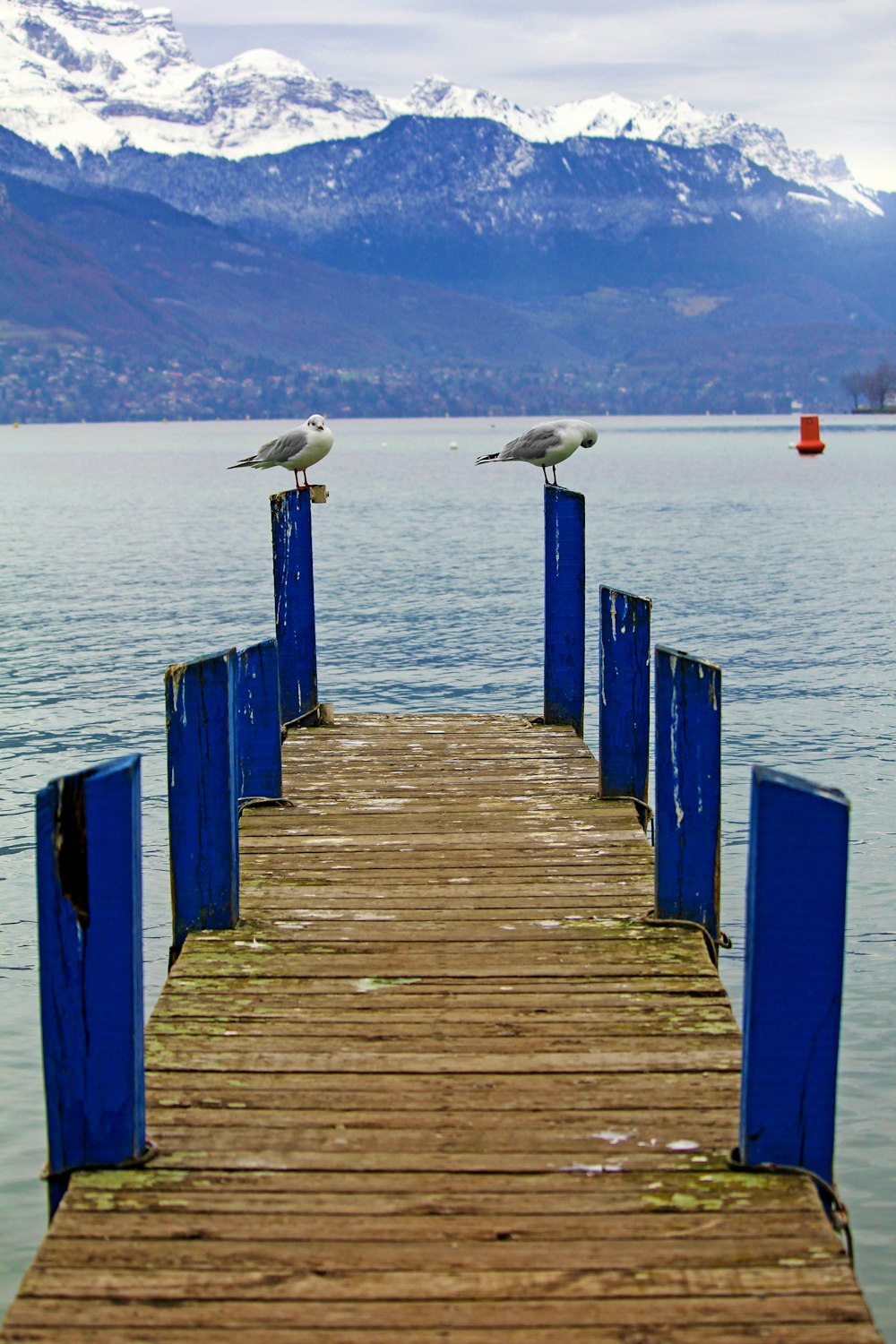 Man Standing On Edge Of Dock Facing Mountains Photo Free Pier