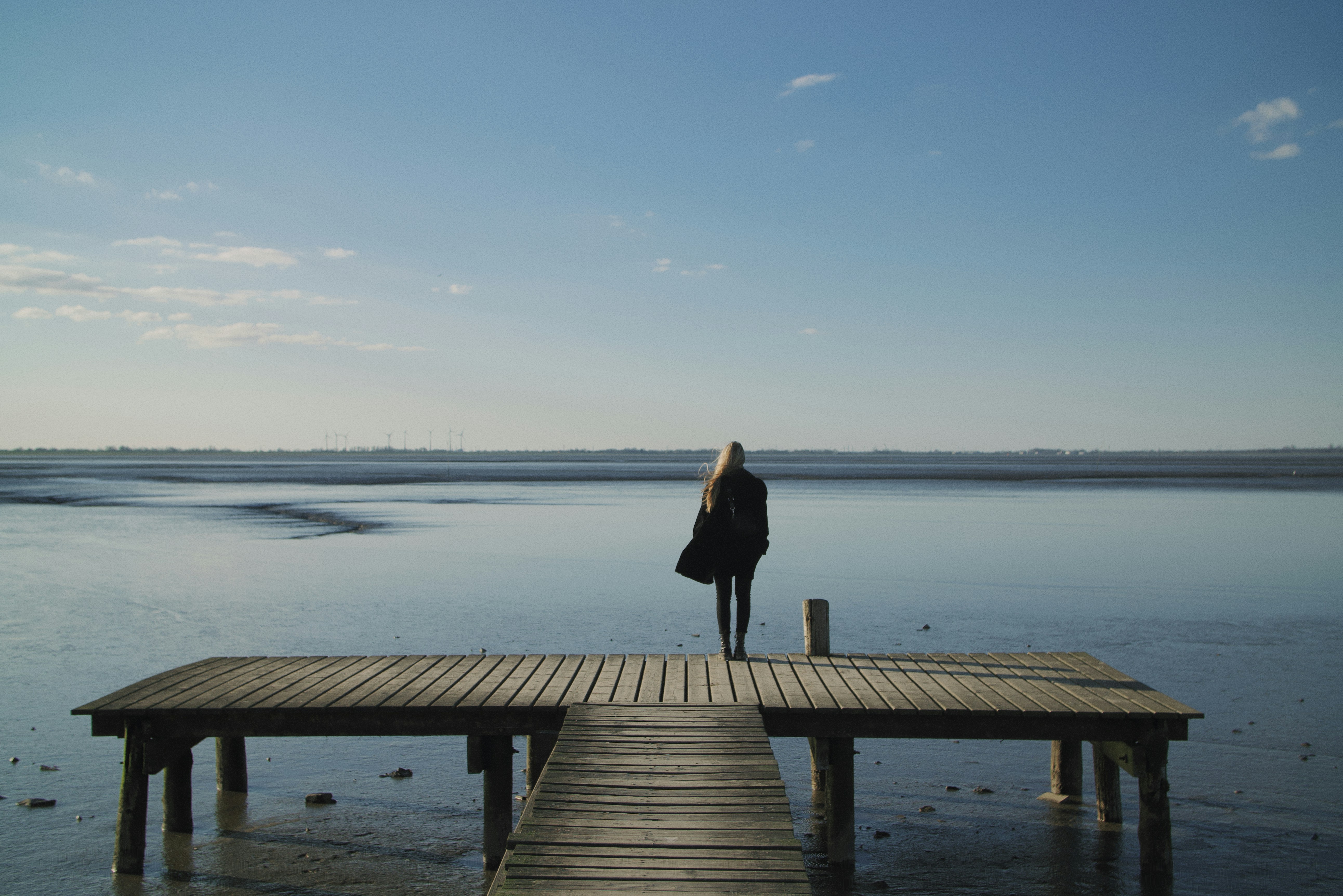 Person Standing On Brown Wooden Dock Free Stock Photo