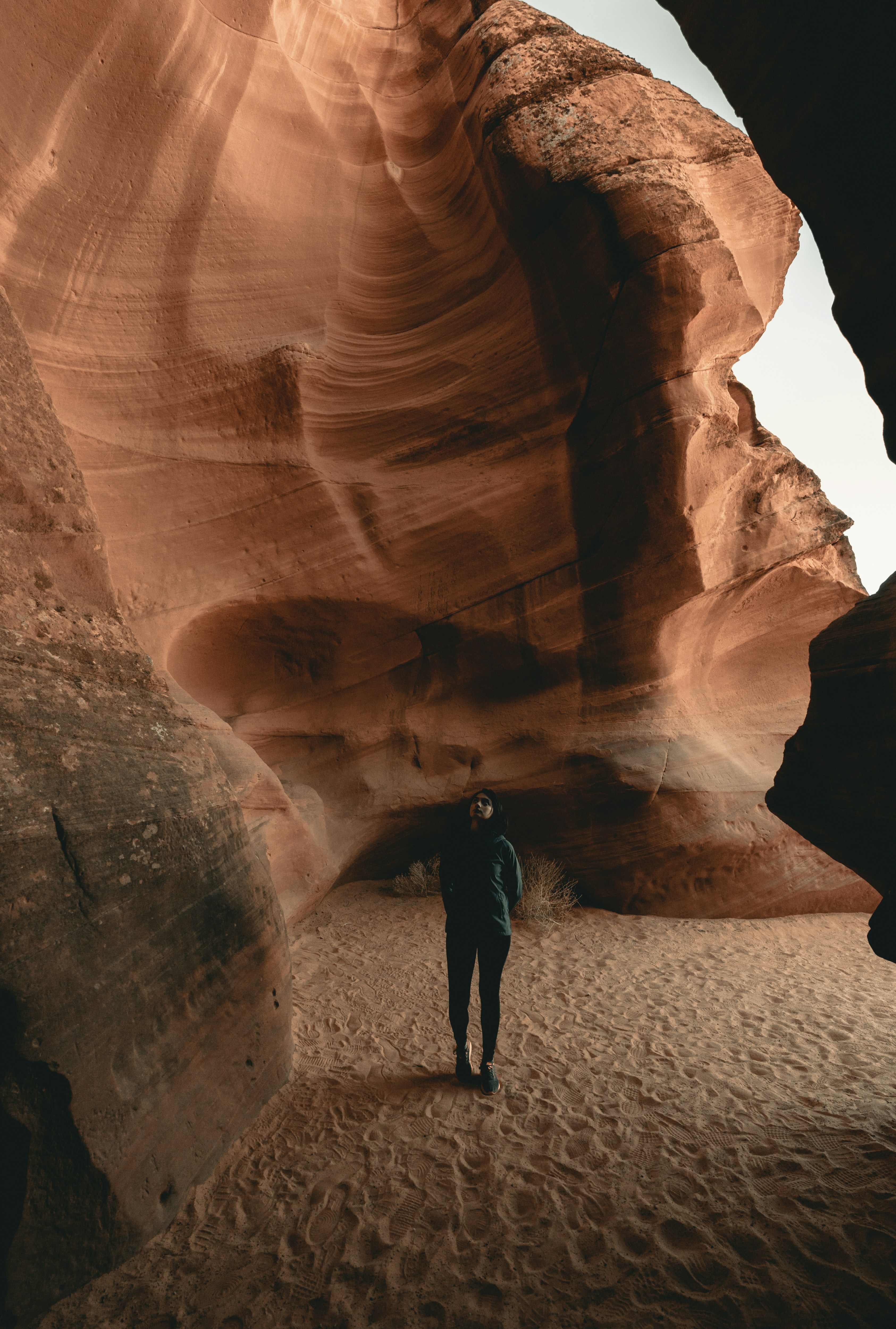 Person Walking Near Rock Formation Hd Image Wallpapers